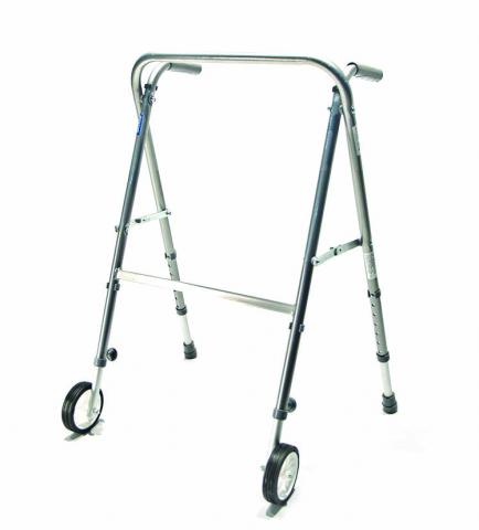 Andador plegado tijera con o sin ruedas, en acero (soporta hasta 100 kg) o en aluminio (soporta hasta 80 kg).