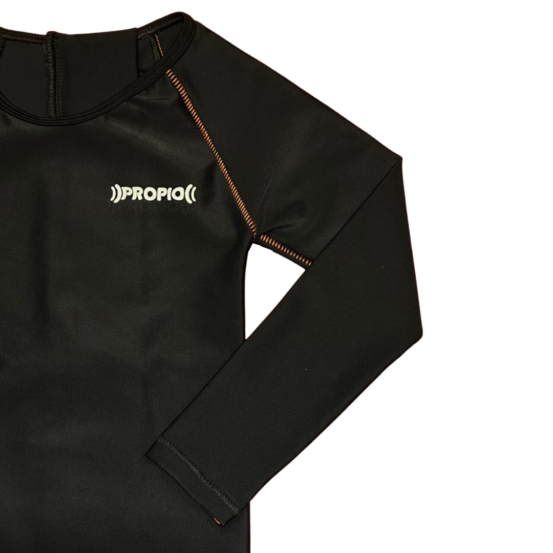 Ortesis blanda compresiva y estabilizadora a medida modelo remera manga larga. Deberá estar realizada en tela suave, respirable y fácil de colocar. La misma ayudará a mejorar la conciencia corporal, la propiocepción y el control motor.