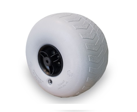 Ruedas de playa de poliuretano sólido, resistentes a los diferentes climas. Equipadas con neumáticos únicos y flexibles que se deslizan sobre superficies blandas. Ideales para superficies delicadas, previniendo hendiduras y absorbiendo los golpes al andar.