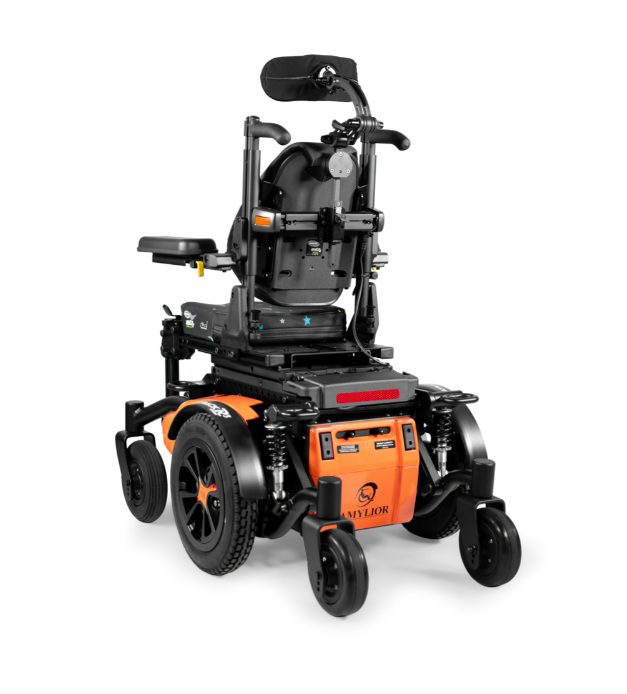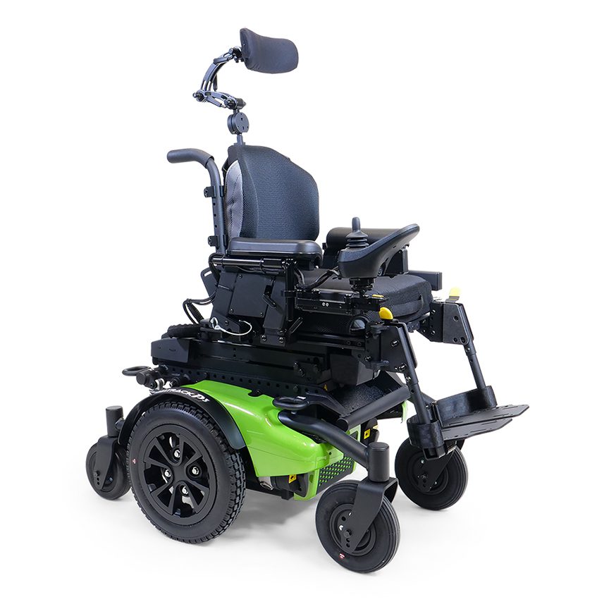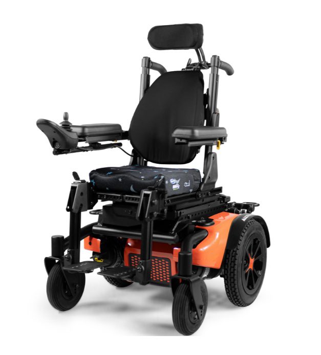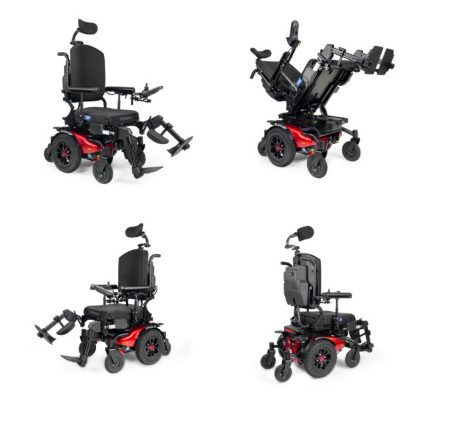 Silla de ruedas motorizada de alto rendimiento con sistema patentado de suspensión dual, independiente de las seis ruedas e interactivo mediante multiples puntos de pivots. Tracción híbrida trasera con radio de giro reducido de 55 cm, conservando las ventajas de una silla de tracción central (radio de giro reducido) y las de tracción trasera (estabilidad y potencia). Sistema modular para adaptar todo tipo de accesorios de posicionamiento y de control electrónico. Motores alemanes de 4 polos. Puntos de fijación para transporte en vehículos de forma segura. Base angosta opcional de 52,5 cm de ancho total.