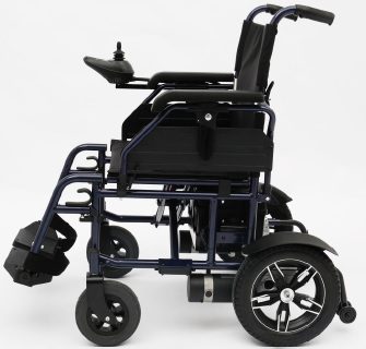 Silla de ruedas motorizada tracción trasera plegado lateral. Para pendientes hasta 8°. Respaldo plegable para facilitar transporte en vehiculos. Apoyabrazos regulables en altura, desmontables, rebatibles. Joystick PG 50A intercambiable en lado izquierdo o derecho. Apoyapies desmontables rebatibles. Velocidad máxima 6 km/h. Motores 24v 2×250 W. Dos baterías de gel ciclo profundo de 12v x 12 Ah cada una. Peso total 39 kg. Soporta pacientes hasta 125 kg.